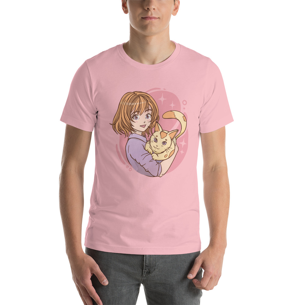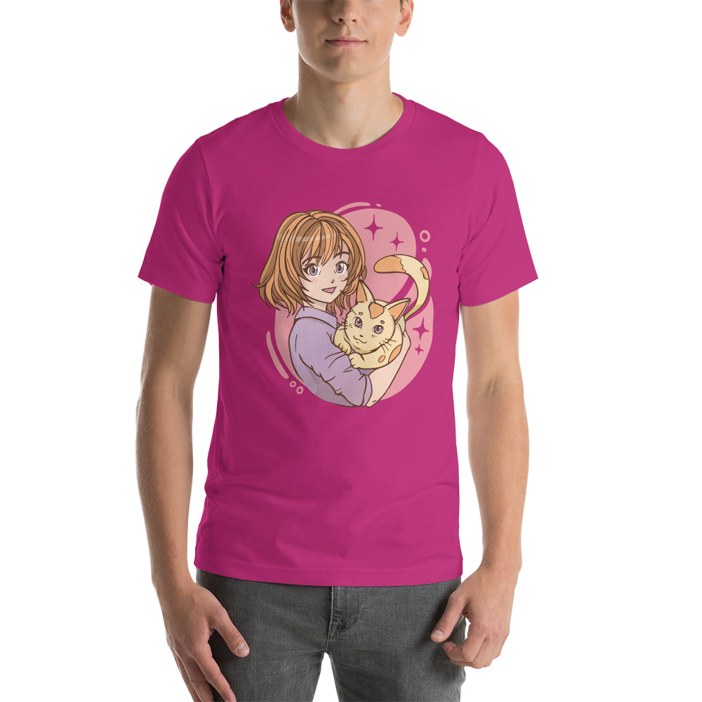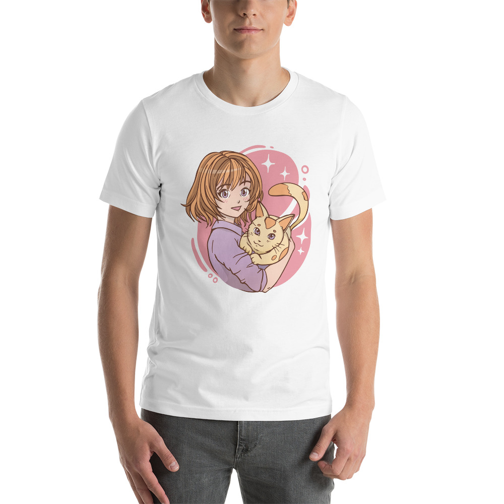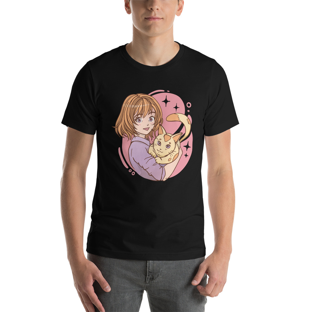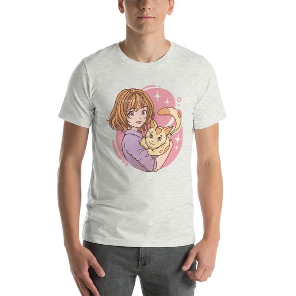 anime girl hugging a cat Unisex t-shirt