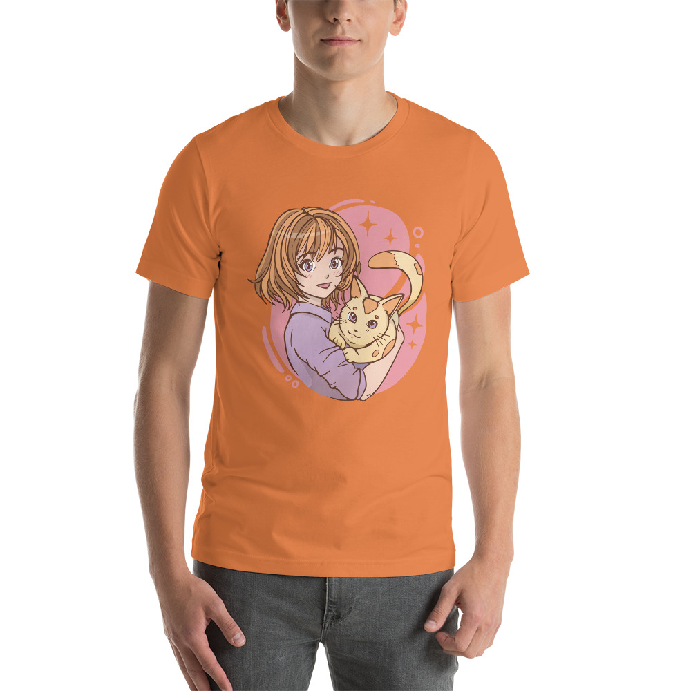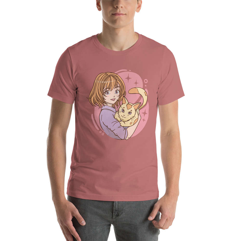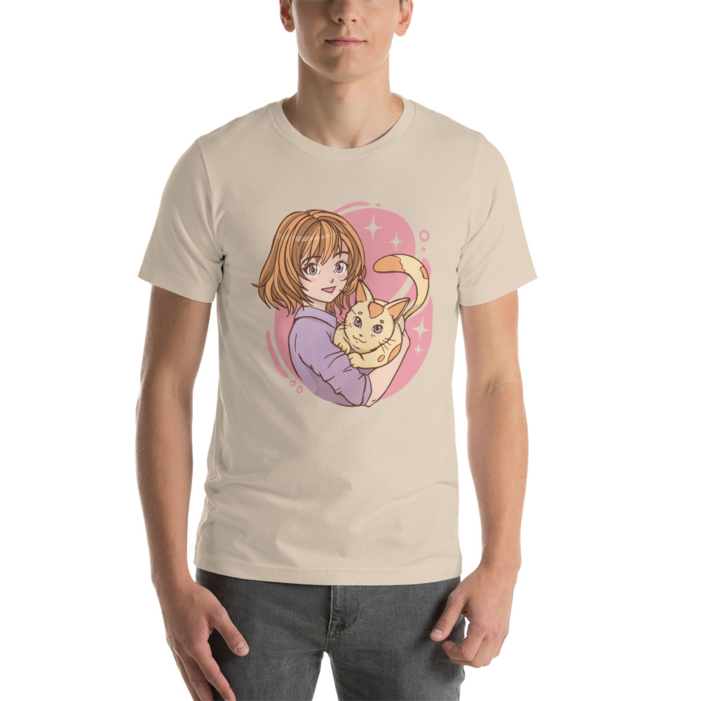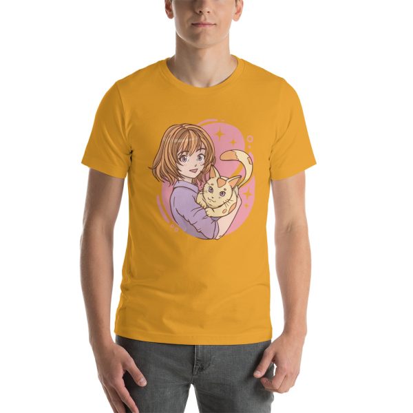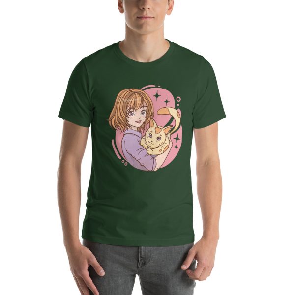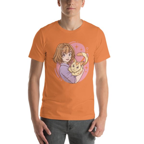 anime girl hugging a cat Unisex t-shirt